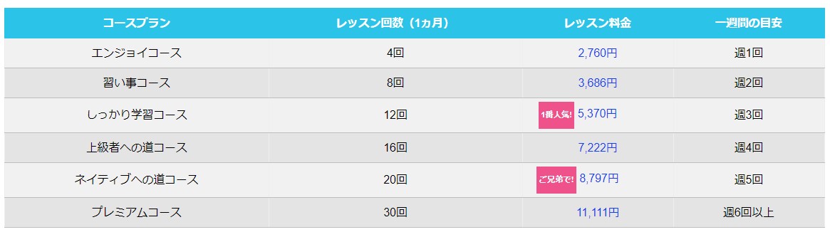 せっかく受講するならば月8回ある習い事コース以上がお得で身にもつきそうです。
