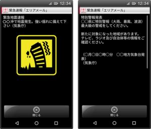 エリアメールでは独自の緊急音とともに各種情報をお知らせします。