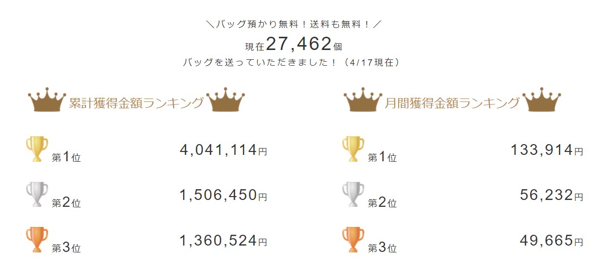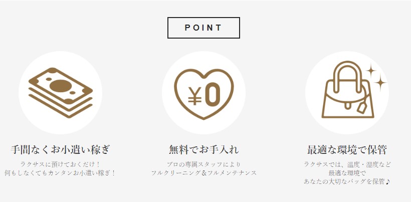 - バッグが貸し出されると副収入がもらえる。[/box]