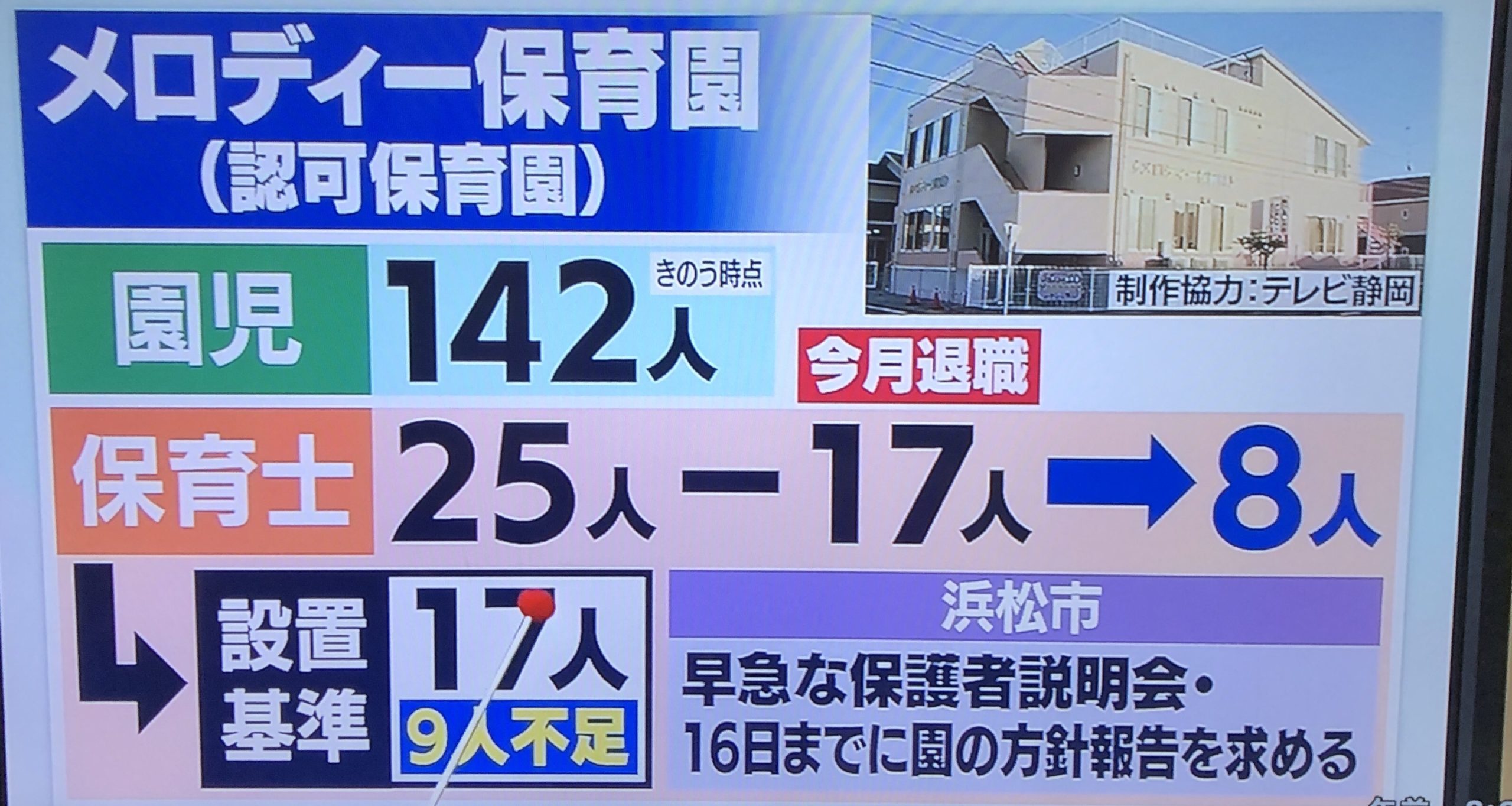 浜松市の保育園で保育士など18人が一斉に退職届を出し,保育士たちはパワハラ被害などを訴えています。