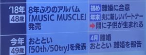 離婚届に署名したが提出したのは今年4月22日。「私がツアーでうっかり出し忘れた間に彼に新しい人ができて妊娠の話を聞いて。これは届け出したら騒がれるから妊娠不安定になって流産したら大変だし、自分は流産経験者だけにこれは大事にせねばと思い、彼らの生活が落ち着いたのを見計らって出したの。彼らの幸せを守りたかった。私は産めなかったけど、彼にあげたかった最大のプレゼントがそこだったから」