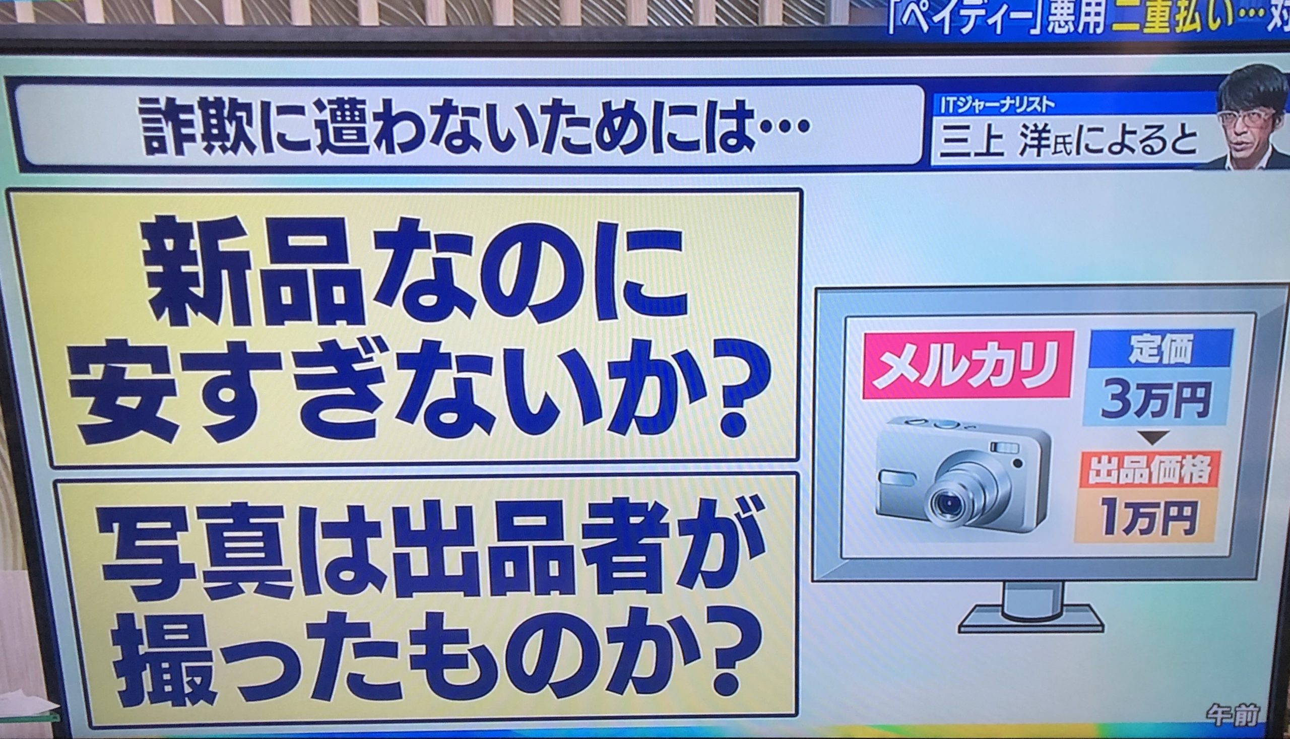 Paidyのシステムがセブンペイなみに考えられていない( ;´Д`) 後メルカリなどの個人取引は手数料を最小限に抑えられるかも知れんがリスクもおっている訳で。多少高くても中古販売店で買った方が安心感はありますよね、一種の保険料です。#とくダネ