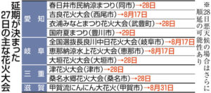 27日には東海地方で花火大会を予定していたところがいくつかありましたが、あいにく延期となってしまいました。
